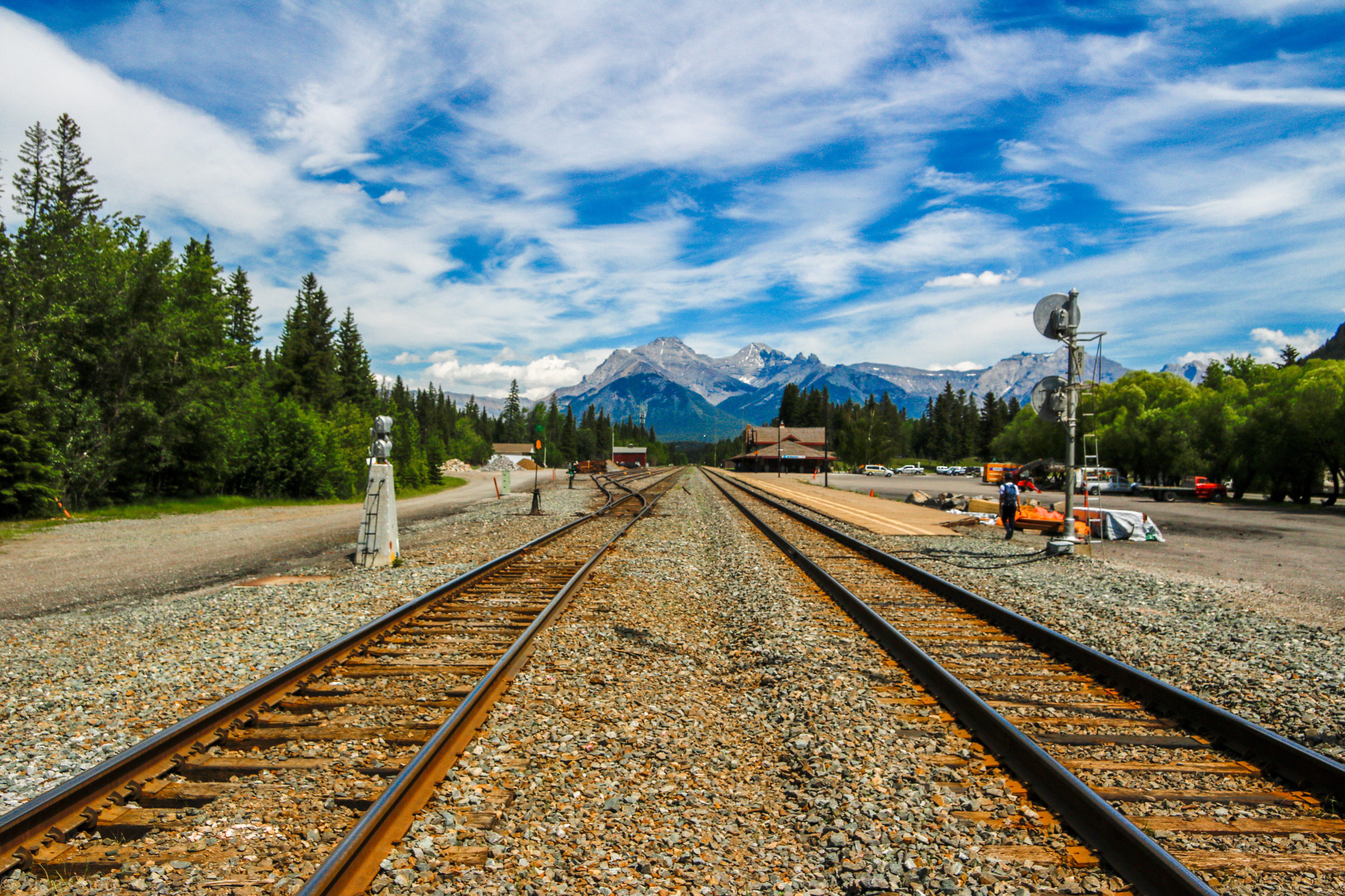 下午的行程主要是沿着公路,但是景观却毫不逊色。经过一小段稍显无趣的骑行后,我们来到了 Vermilion Lakes 的湖畔公路。